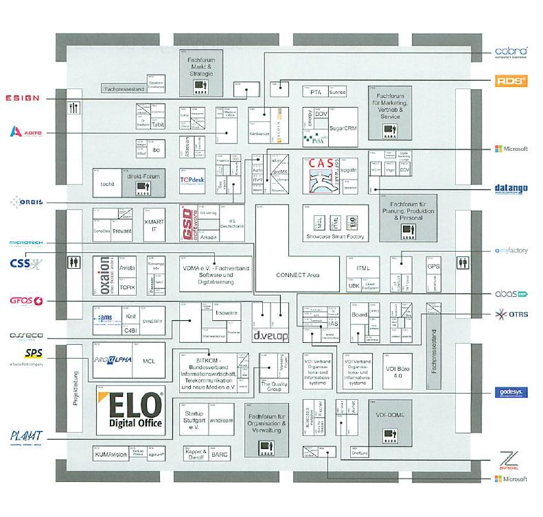 Viele Anbieter wollen nicht mehr unter dem Label ECM Enterprise Content Management subsummiert werden. Einige setzen noch auf Dokumentenmanagement. Enterprise Information Management gehen nur wenige an. Viele meinen unter Überschriften wie Digitalisierung besser aufgehoben zu sein (übrigens, Digitalisierung im ECM-Umfeld meint das Überführen analoger Objekte mittels sensorischem Abtasten und Wandlung.in ein Digisat, also bei Dokumenten schlicht Scannen). So war denn auch nur ein kleiner Ausschnitt der Szene – egal wie sie sich nun nennt – in Stuttgart vertreten. Wie schon angemerkt fehlten die großen Namen. Gern hätte man von OpenText und EMC erfahren, wie es mit Documentum weitergeht. Interessant wäre es gewesen zu sehen, welche Auswirkungen der Verkauf von Lexmark an einen Investor auf die Produktentwicklung hat. Gern hätte man gewußt, wie in der Oracle Cloud Strategie Dokumententechnologien eingebunden sind. Und die Nutzung von Watson bei Dokumentenerschließung und Informationsmanagement wäre sicher auch ein hochinteressantes Thema gewesen. Nur – die großen Namen der Branche waren nicht da. Und auch Microsoft bot lediglich eine Präsentationsmöglichkeit für Partner und kein in Richtung ECM weisendes, eigenes Angebot. Auch im Mittelstand fehlten viele der Softwarehersteller, die in den vergangenen Jahren die DMS EXPO als Plattform genutzt hatten. Prominent war wie immer ELO Digital Office auf ihrer "Hausmesse" vertreten. Auch Windream (kam auch mit neuer Software) und d.velop waren noch mit größeren Ständen vertreten. Die anderen nutzten die "Standard-Messestand-Baukästen" oder waren mit Präsentationstischen als Partner bei ELO, d.velop, Microsoft, VDMA, BITKOM und VOI platziert, z.B. agorum, Basware, Ceyoniq (Kyocera), CSS, DM Dokumenten Management "LoboDMS", Docuware, InoTec, Kendox, LBoffice, Otris, PDFtools und ein paar andere. Hinzukamen kamen zahlreiche Integratoren, die letztlich die Partnerstände von Anbietern und Verbänden (co-)finanzierten. Auffällig hier Bürotex, CTO, edoc, Major League Sharepoint, TCQ, ITML. Manche dieser Systemhäuser leisteten sich auch einen eigenen Stand. Aber das wars auch schon. Nähme man den Gartner-Magic-Quadrant für ECM als Maßstab, dann wären hieraus nur Microsoft – die machten in Stuttgart nun wahrlich nicht auf ECM – und HP(E) zu nennen, wobei man den Tisch von Hewlett Packard durchaus übersehen konnte. All dies nur ein kleiner Ausschnitt von dem Milliarden-Business, das laut BITKOM auf der Pressekonferenz aktuell im Bereich Information Management abgeht. Noch vor einigen Jahren hätte allein die Information-Management-Branche lässig allein die Halle gefüllt. An die Sturm-und-Drang-Zeiten in Essen gar nicht erst zu denken. Aber wir wollen hier keine Liste aufmachen, wer alles nicht da war. Etwas anderes fiel auch noch auf – die innovativeren Newcomer waren nicht zu sehen. Wenn denn nun schon die ganzen großen inetrnationalen Unternehmen aber auch die kleinen neuen innovativen Newcomer fehlen, was bleibt dann von einer Branchenschau? Will und braucht man noch eine Branchen(selbstbe)schau?