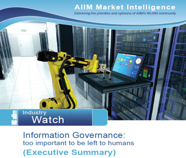 Information Governance ist einer der aktuellen Schwerpunkte der AIIM Aktivitäten. Information Governance geht weit über das Thema Records Management hinaus. In der Executive Summary (Download bei AIIM) der 28seitigen Industry-Watch-Studie werden aktuelle Themen von Automatisierung, Cloud, E-Discovery und Records Management angesprochen.
