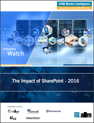"The SharePoint platform has evolved over time, positioning to become a digital workspace and universal interface of sorts. SharePoint is being used in support of collaborative efforts of all kinds including co-authoring of documents, information sharing, and an integration point with all enterprise information sources. In this study, we find that there is a slight increase over last year of SharePoint use in an Enterprise Content Management (ECM) and Document Management (DM) role with 28% of respondents citing it is their only (10%) or main (18%) ECM/DM system…"
