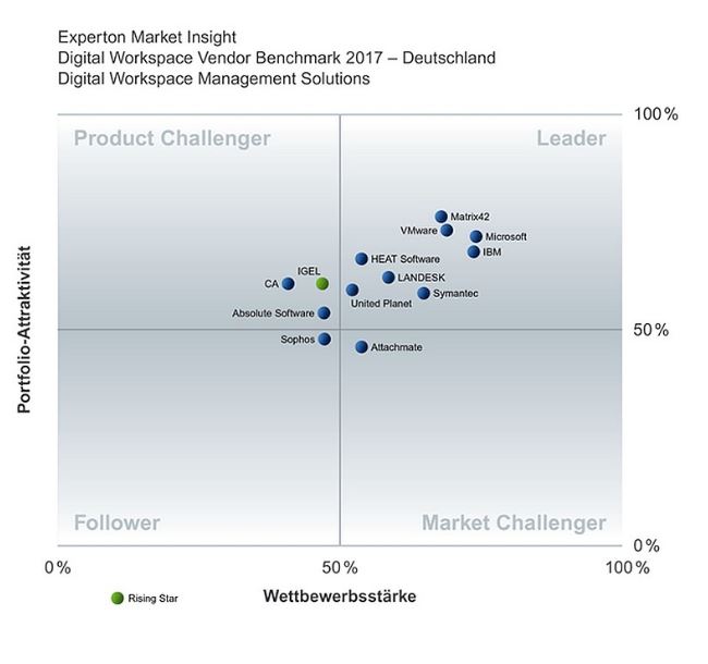 Die Experton Group gibt einen Ausblick auf dien Markt für den Arbeitsplatz der Zukunft: Workspace. Anbieter und Lösungen, die 2017 eine Rolle spielen können, werden dargestellt und eingestuft. Der "Digital Workspace Vendor Benchmark" erscheint zum ersten Mal.